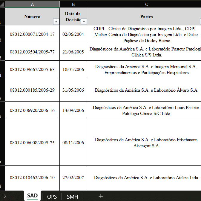 Base de Dados: Atos de concentração envolvendo ativos do setor de saúde suplementar analisados pelo Cade (jan/2003 a dez/2024)
